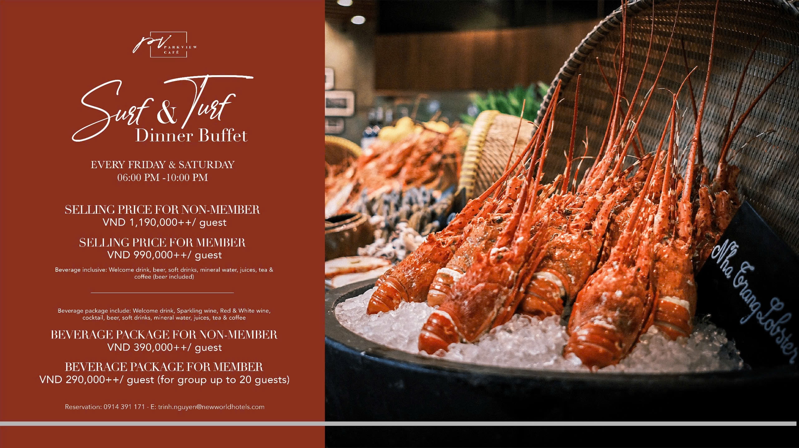 Surf and Turf buffet at Park View for a perfect weekend dining experience.